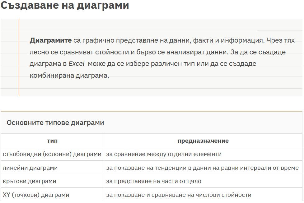 13. Основни типове диаграми. Графична интерпретация на данните. Копиране на диаграма