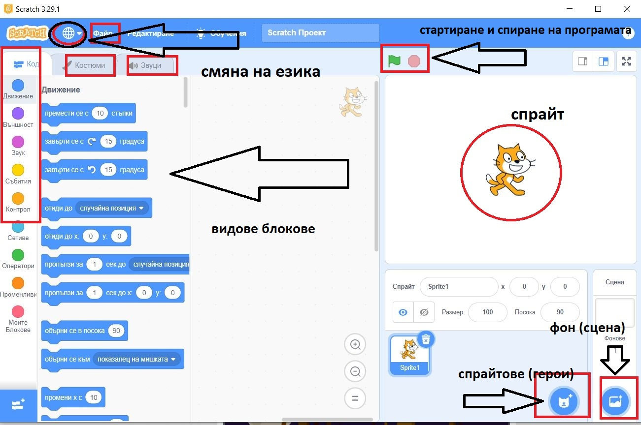 Блокове за движение в Scratch 3