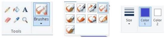 Цветът на рисуване е в зависимост от използването на левия или десния бутон на мишката по време на рисуването – при натискане на ляв бутон се рисува с основния Цвят 1/Color 1, а при щракване с десен бутон – с фоновия Цвят 2/Color 2.