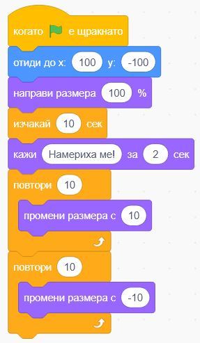 По-долу са показани примерни кодове на героите, за изпълнението на задачата. Може да импровизирате и да ги промените, стига да получите сходен резултат.