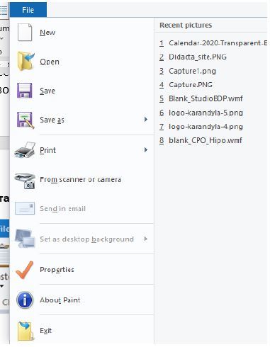 В менюто View се намират групите с инструменти за визуализиране на допълнителни ленти и свойства към работния екран на Paint. Добавянето и премахването на тези ленти се определят от състоянието на полетата с отметки (checkbox).