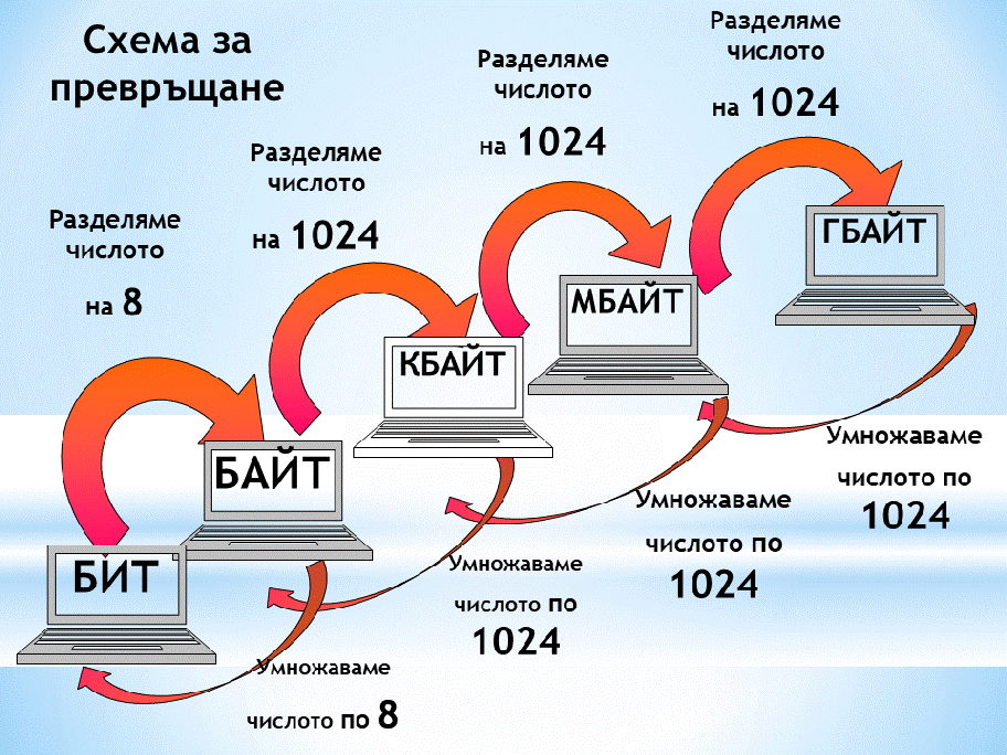 Компютърът обработва информацията под формата на електрически импулси. Всеки един електрически импулс има две състояния: наличие на напрежение и отсъствие. За да бъде възможно измерването на потока данни, който се обработва, първото състояние се означава с 1, а второто – с 0. По този начин най-малката единица за измерване на информация може да има само две стойности. Тя се нарича бит и се записва 1 b (bit).