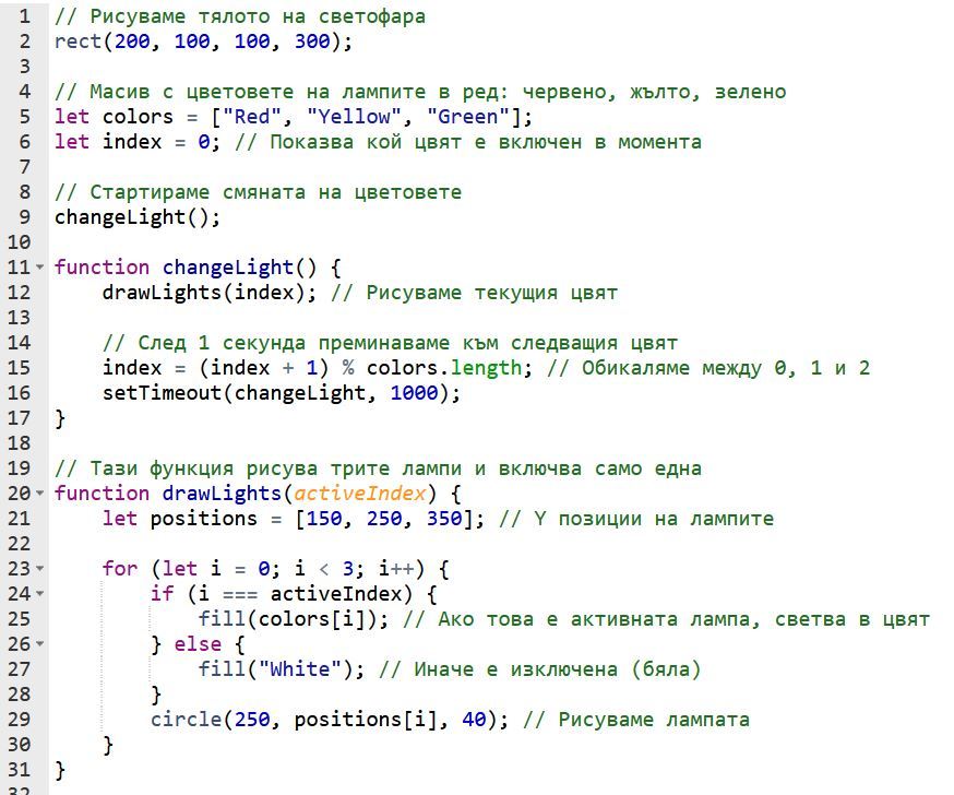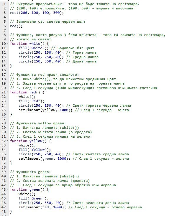 43. Създаване и използване на функция с параметри. Използване на случайни числа. Списъци. Работа по проект: Светофар