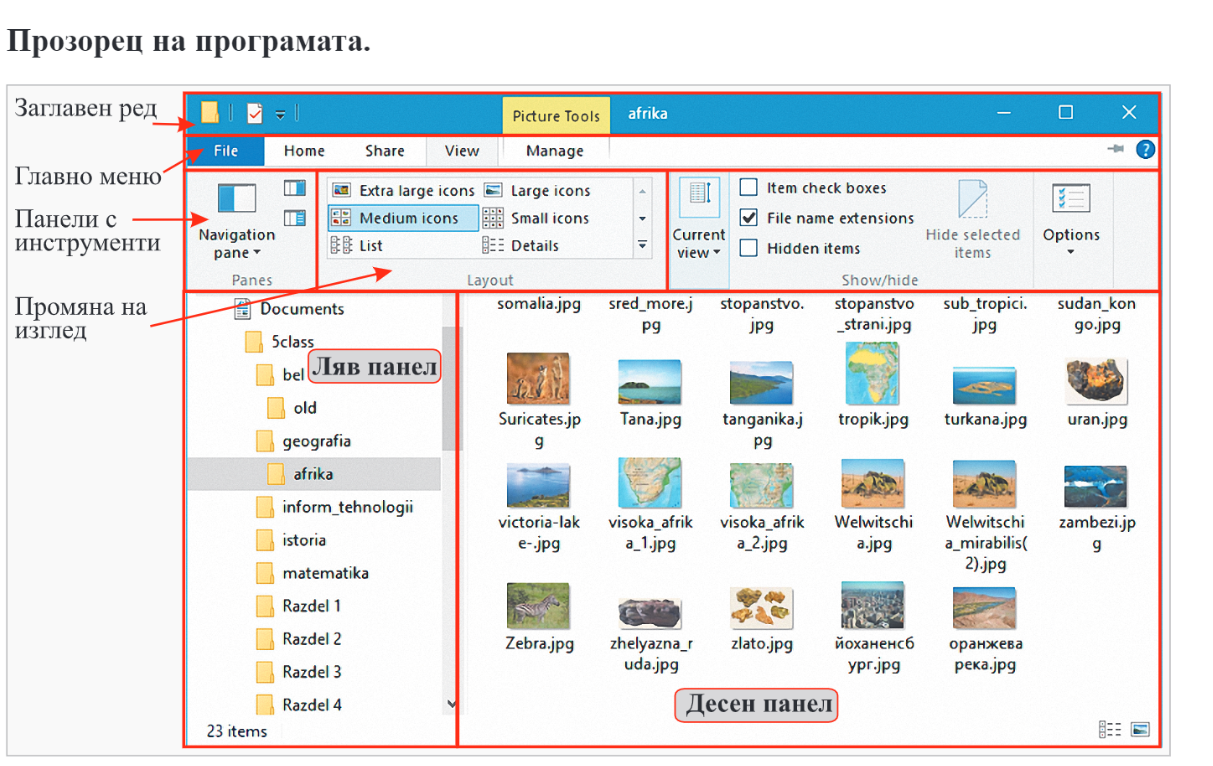 Зад. 1: Отворете файловия мениджър и разгледайте менютата му.