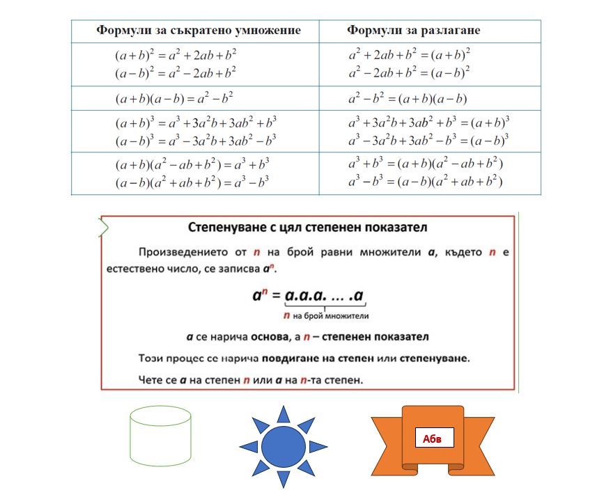 Задача: Създайте таблици в програмата Word и вмъкнете необходимите математически формули по показания по-долу начин: